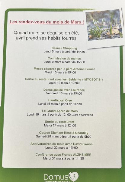 Résidence Les Cèdres > Actualités > Ce mois à la résidence?: vos moments à partager? Ce mois à la résidence?: vos moments à partager? Publiée le 03/03/2026 Découvrez tous les rendez-vous du mois à la résidence !