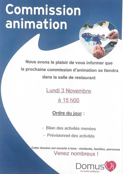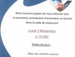 Nous avons le plaisir de vous informer que la prochaine commission d’animation se tiendra dans la salle de restaurant :