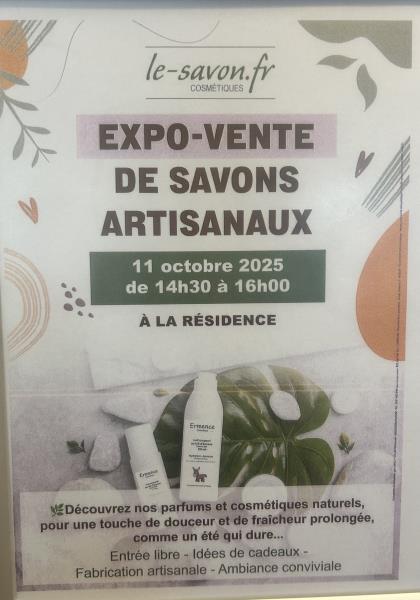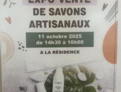 Nous organisons une expo-vente de savons artisanaux le 11 octobre 2025, de 14h30 à 16h. Venez découvrir et acheter des créations uniques, faites à la main avec des ingrédients naturels. Ce sera un moment convivial pour échanger avec les artisans passionnés. Nous serons ravis de vous y accueillir nombreux !