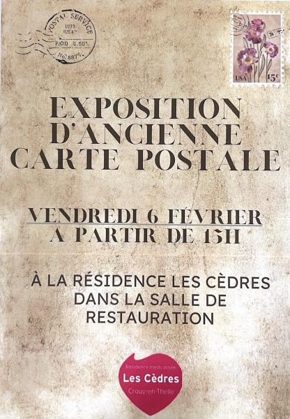 La résidence a le plaisir de vous inviter à une exposition de cartes postales anciennes, qui se déroulera le vendredi 6 février à partir de 15h, au sein de la résidence.