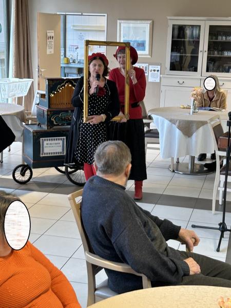 Pour les fêtes de fin d’année, nous avons eu le plaisir d’accueillir Mimi Pinson pour une prestation d’orgue de barbarie et de chant, offerte aux résidents par les Ambulances Beaumontoises. Ce moment musical et convivial a apporté joie et bonne humeur à tous ! Un grand merci aux Ambulances Beaumontoises pour leur générosité et leur soutien !