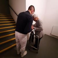 Publiée le 23/02/2021Cela fait parti des exercices que Romain, psychomotricien, fait réaliser aux résidents, monter et descendre les marches, et toujours avec le sourire. Lire la suite