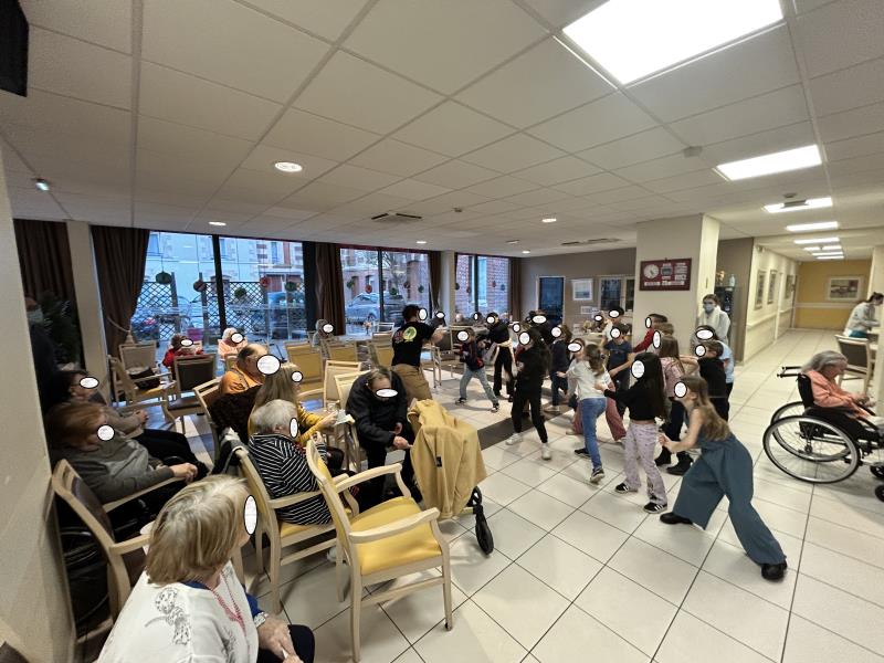 Mercredi, nous avons accueilli les enfants du centre de loisirs de Crouy-en-Thelle pour une activité de danse assise animée par Laurence. Ce fut un très beau moment de partage, riche en sourires et en émotions, favorisant de beaux échanges intergénérationnels. La rencontre s’est poursuivie autour d’un goûter partagé, prolongeant ce temps convivial apprécié de tous.